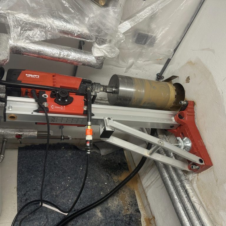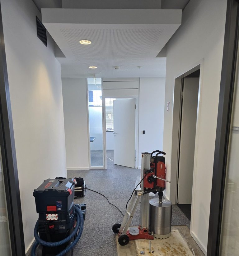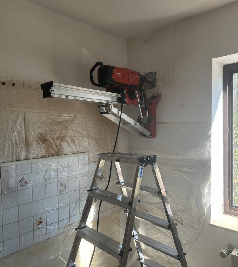 Durch professionelle Werkzeuge und Hilfsmittel können Bohrungen nicht nur bei Sanierungsobjekten sondern in bewohnten Raumen durchgeführt werden.